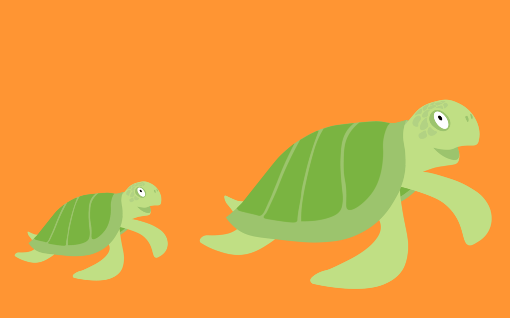 7. Which turtle is smaller?