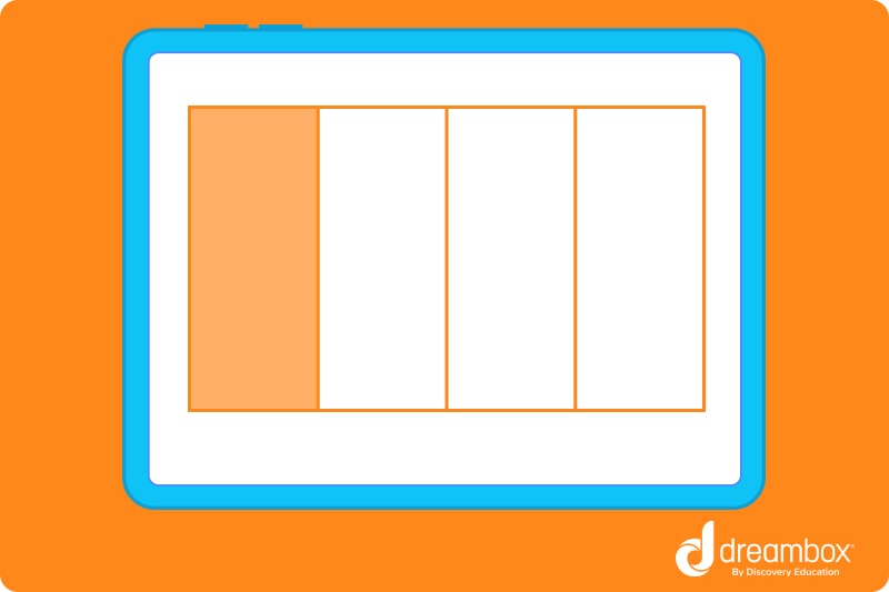 1. Draw a rectangle. You need to split it into four equal columns because the denominator in the first fraction is 4. The numerator is 1. So, simply shade in one of these columns as shown below: