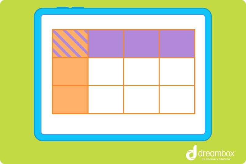 You can use circles, as we did above. But, perhaps the most common shape used to represent a fraction multiplication is a rectangle because it can easily be split into equal parts.