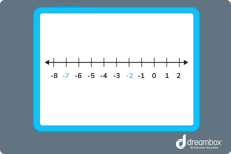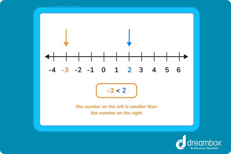 The graphic above is an example of a negative and positive number line and is an effective visual aid when students first learn the concept of negative numbers. A number line with negatives allows students to see that the positive numbers are to the right of the zero, and the negative numbers are to the left.