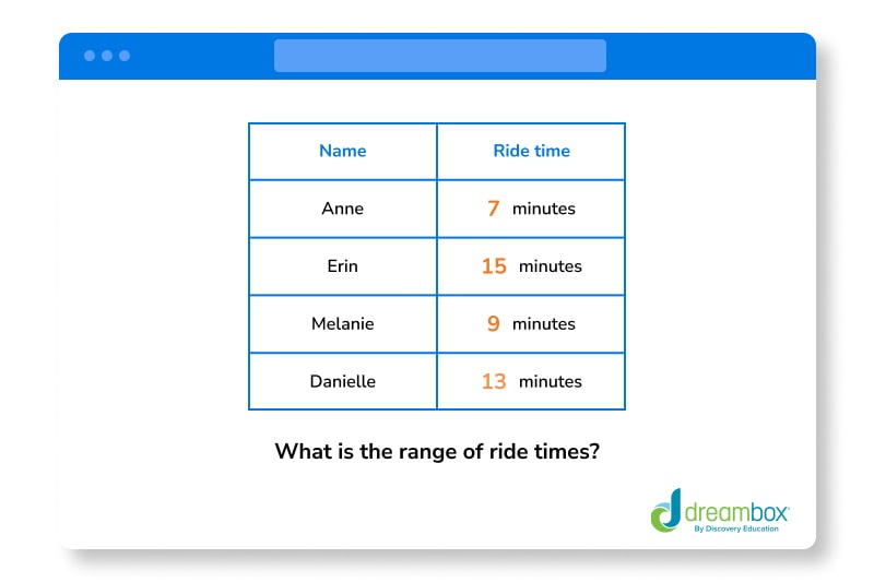 These problems are a great way for your student to gain extra practice calculating the range. For more focused practice, check out Dreambox Math. This interactive online program uses fun games and activities to build math skills and confidence.