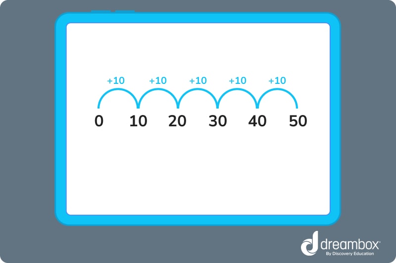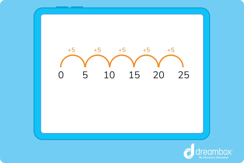 While the above examples skip count by 5s, you can use any whole number to skip count forward or backward. Students generally learn to skip count by 5s first and then start to notice patterns, such as two 5s make a 10.