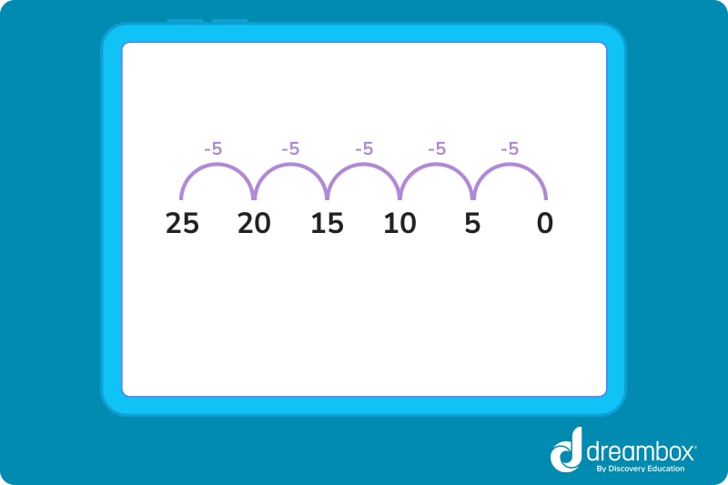In this example, the number series begins at 25. Then, groups of 5 are subtracted to move the number series in a negative direction.