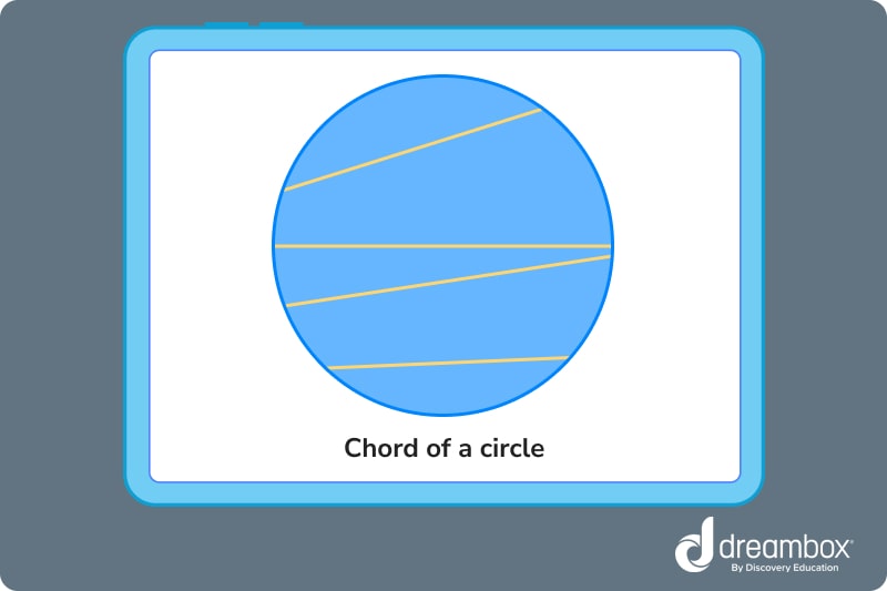 Chords in a circle are any line segments that go from one side of a circle to the other. As long as both endpoints of the line lay on the outer edge of the circle, then it’s a chord. Yes, the diameter of a circle is also a chord!