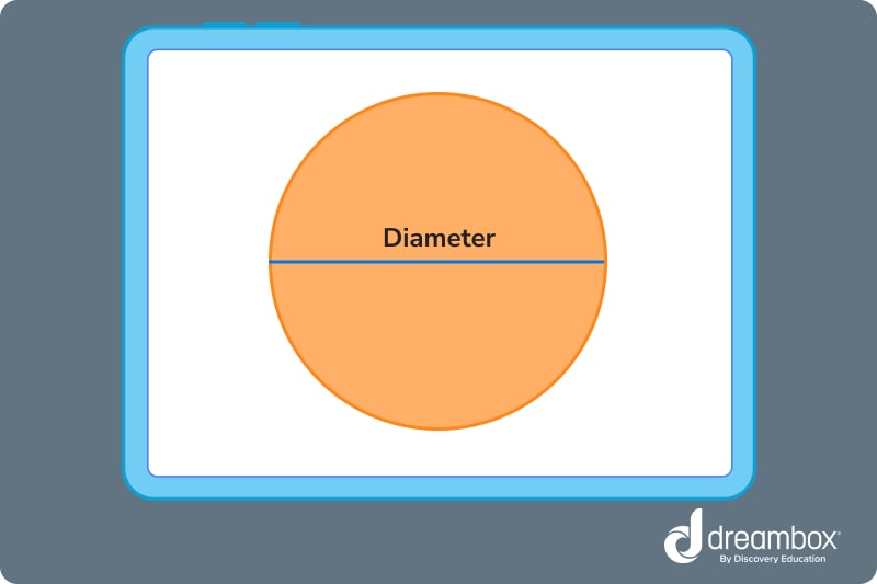 - The diameter of a circle is the width of it through the exact center. Students can find this by identifying the line that passes through the center of the circle and touches both outer edges. In our illustration, that’s line O.