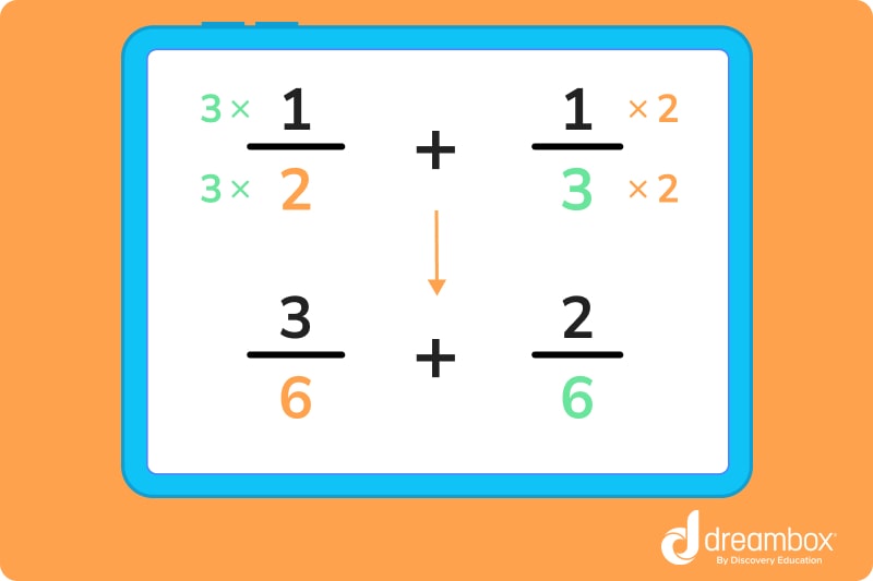 Step 1: Make sure that the fractions have the same denominator. To do this, we can find a common multiple of the denominators and convert each fraction into an equivalent fraction with that common denominator.